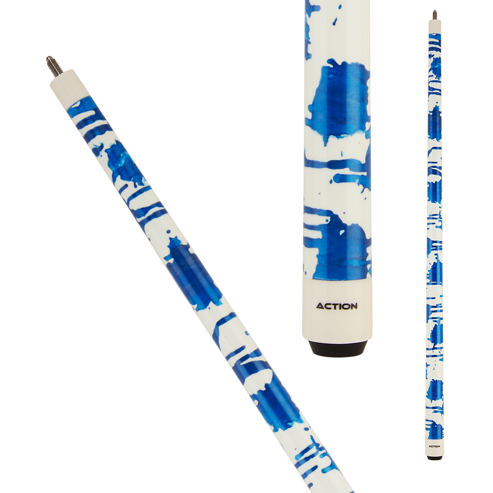 Gloss white with blue shimmer splatter design